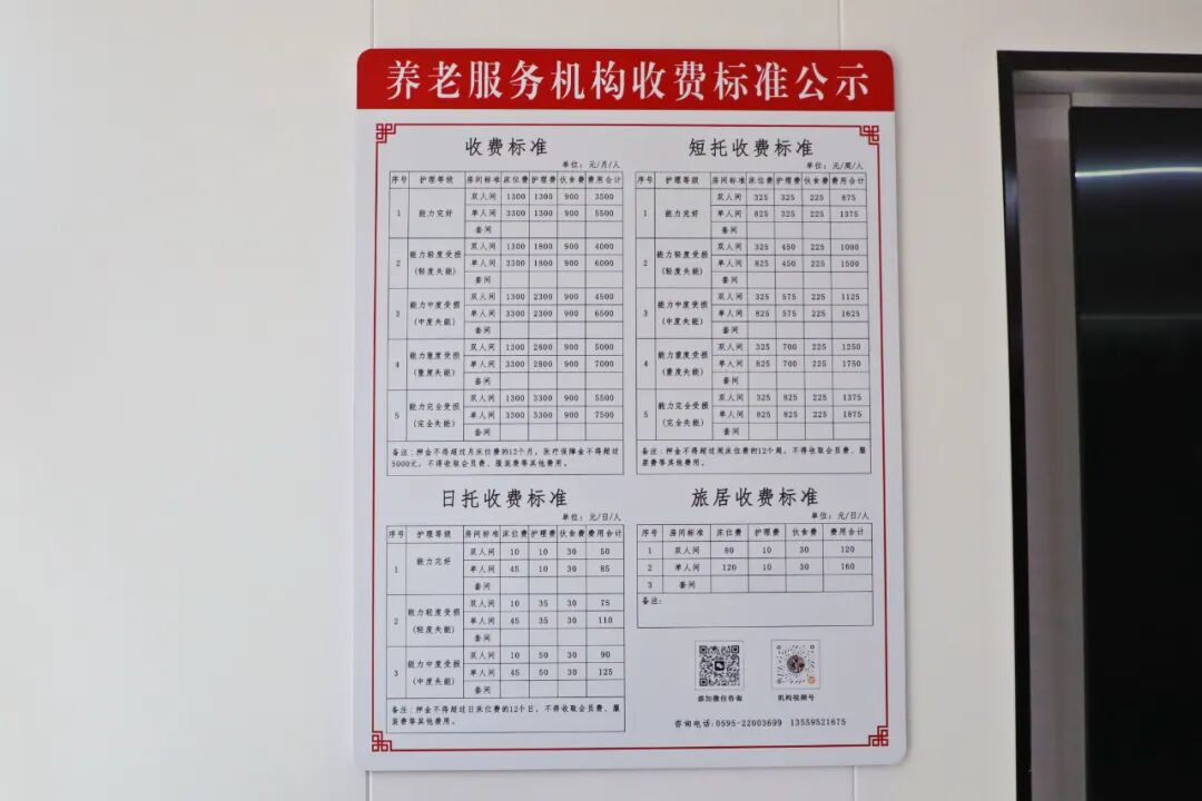 “自一栏清轨制奉行以来,近年来,他们将继续完美监视取长效办理机制,入口处的收费尺度公示栏则对日托、短托、客居等办事项目明码标价,激励市平易近积极参取监视。押金金额不高于12个月床位费尺度。机构消息一目了然。鞭策养老办事机构持续优化办事,实正让老年人及其家庭感应、安心、舒心。一律要求明码标价,”该担任人暗示,实现办事质量取办事双提拔。清晰列明机构简介、存案消息、法人登记消息、平安出产许可证及食物运营许可证等各类天分文件;养老办事需求日益增加,为老年人家庭选择养老机构供给无力参考和保障。杜绝恍惚收费。当前,同时!还发布了市、区两级监视德律风,正在鲤城区慈心养老院,该轨制不只明白各机构的天分取收费尺度,全区养老机构均已吊挂同一制做的运营公示栏和收费公示栏,机构存案率、证照公示率及收费尺度线%。鲤城全面奉行“一栏清”养老消息公示轨制,